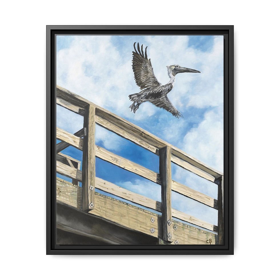 Framed Pelican Flying Off The Pier Original Painting Print